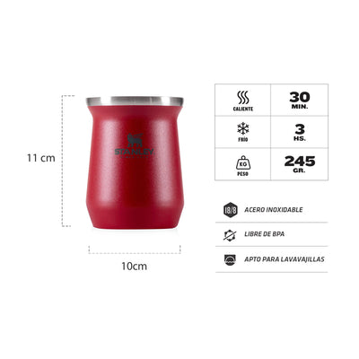 Para todos los amantes del mate, hemos pensado en ellos; este mate mantiene la temperatura durante toda la cebada, es práctico, fácil de limpiar e inocuo, ya que no transfiere ningún aroma ni sabor defectuoso a tu mate. Mantiene la temperatura caliente durante 30 minutos y fría durante 3 horas.